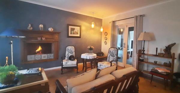 The living area is situated next to the undercover patio with its built-in braai and fully enclosed garden. What a lovely space to relax or have al fresco meals.