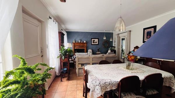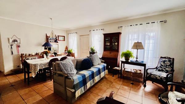 The open-plan lounge and dining area flows effortlessly, with double doors leading onto an undercover patio featuring a built-in braaiperfect for entertaining. From the enclosed patio, a door opens to a lush private garden, a tranquil sunny corner ideal for morning coffee, quiet reading, or simply soaking up the peaceful atmosphere.