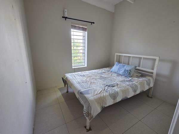 The home features three well-appointed bedrooms, each with direct access to the outdoors, and two full bathrooms. The open-plan living area flows through French doors to a private garden an inviting space for entertaining, complete with a built-in braaai. Additional convenience includes a double garage fitted with automatic doors and a designated laundry area.