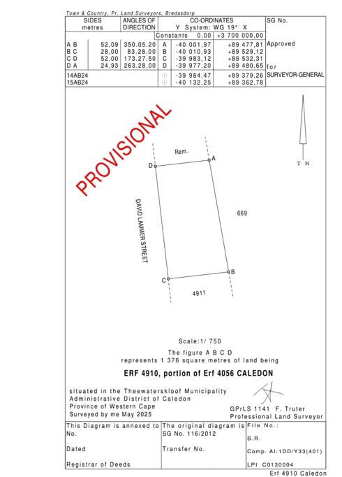 Nestled in the vibrant heart of Caledon, this impressive 1,367 m2 plot offers an idyllic retreat, far removed from the town''s hustle and bustle. Just a plot away, youll find a tranquil river, enhancing the natural allure of this remarkable property. The lush surroundings are a feast for the eyes, and youll enjoy the soothing sounds of birds singing as you immerse yourself in the serenity of this quieter neighborhood.