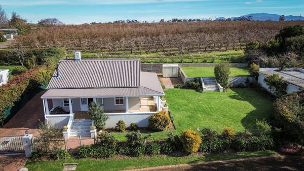 Cottage in the country situated in a cul de sac on a working apple farm.. EXCLUSIVE MANDATE: Arguably one of the cutest cottage in the village with wrap around verandah for sipping that early morning coffee watching the sun rise over the Groenlandberg Mountains or enjoying a cool climate glass of wine while watching it set over the Hottentots Holland Mountains. In spring watch the Canola fields turn a glorious golden shade of sunshine in the distance while the apple trees pop their blossoms on your doorstep. This is what the country life offers in the Elgin Valley where nature is always at work be it bees pollinating orchards or seasons changing, apples being picked or just a beautiful moon rise over the distant mountains you can''t escape the beauty on offer.