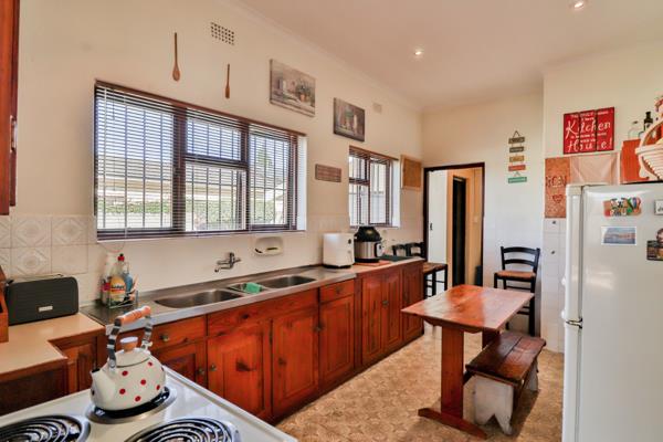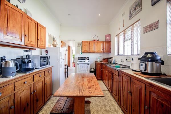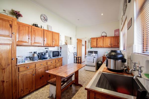 The separate, partially open plan dining room leads to a kitchen with plenty of wooden cupboards. There is an outdoor undercover braai area which also serves as a laundry area and has access to the back garden. One of the bedrooms has been converted into another living area with aircon for the hotter summer days and combustion burner for the cold winters famous in this apple and pear growing area. The main bedroom inter-leads into another bedroom, ideal to be used as a study or work from home office as it has outdoor access with fibre been pulled through for internet connectivity. There is a family bathroom with shower over the bath and a separate guest cloakroom. The single garage has an auto door and provides direct access into the house.