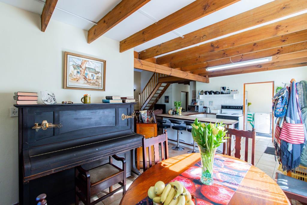 Neat as a pin cottage in the heart of picturesque Grabouw. EXCLUSIVE MANDATE: Cute, country cottage styled home situated at the end of a quiet cul de sac in heart of country living Grabouw. On entering the open plan home with high ceilings in the lounge area and exposed beams in the dining and kitchen area, its a space for everyone to be included, be it cooking in the kitchen, watching the TV in the lounge or playing the piano in the dining room. The Jetmaster fireplace is a focal point in the open plan area where warm cosy nights are spent together in the colder winter months. The kitchen with its separate laundry and dining room face north allowing the sun to stream through the entire open plan area, while the main bedroom also enjoys facing north and has an en suite bathroom with bath. The study downstairs can double up into another bedroom if needed or a good office space to work from home with fibre having been installed. A further 3 bedrooms are upstairs with magnificent views from the 4th bedroom over the Groenlandberg Mountains. The neatly maintained garden is lovingly taken care of and brings an abundant birdlife with plenty of chirping as the sun rises. There is a single garage with direct access into the diningroom, burglar alarm, burglar bars and beams to complete this well looked after home.