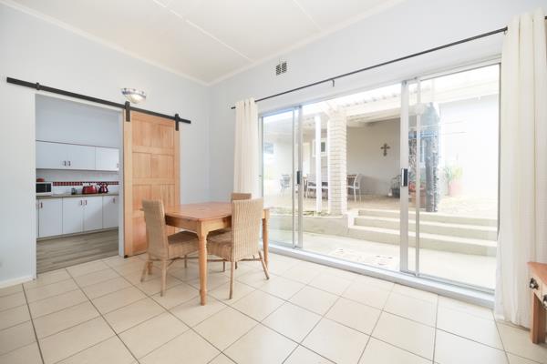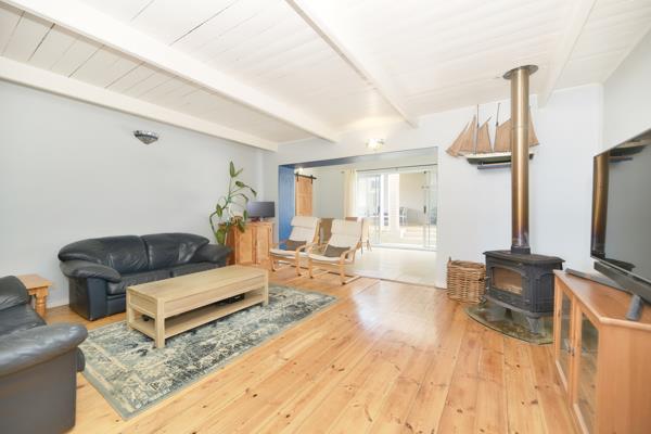 The cosy lounge is the perfect retreat, featuring beautiful wooden floors and a practical wood-burning stove. The adjacent dining rarealeads directly to a patio, making year-round entertaining a breeze. The large kitchen provides ample counter space and room for a dining table The back door leads to a patio and a separate laundry room.