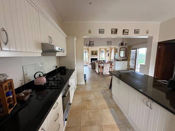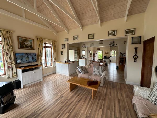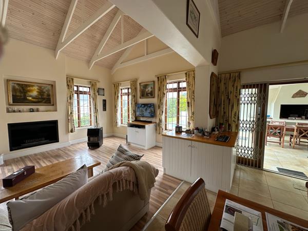 Exquisite single story 3-bedroom home including a separate home office with high quality finishes, for sale in the Klein river estate, a gated estate on the outskirts of Stanford. Positioned on an elevated plot, this home offers unobstructed mountain views from most of the living rooms and bedrooms.