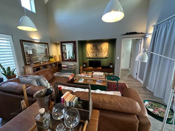 From the lovely, manicured garden you will be welcomed into the warm and north facing patio with a wooden stove for heat and cooking. Sliding doors will take you to the double volume open plan lounge, dining area and kitchen.
