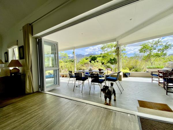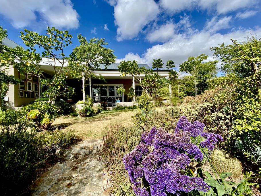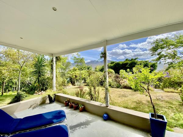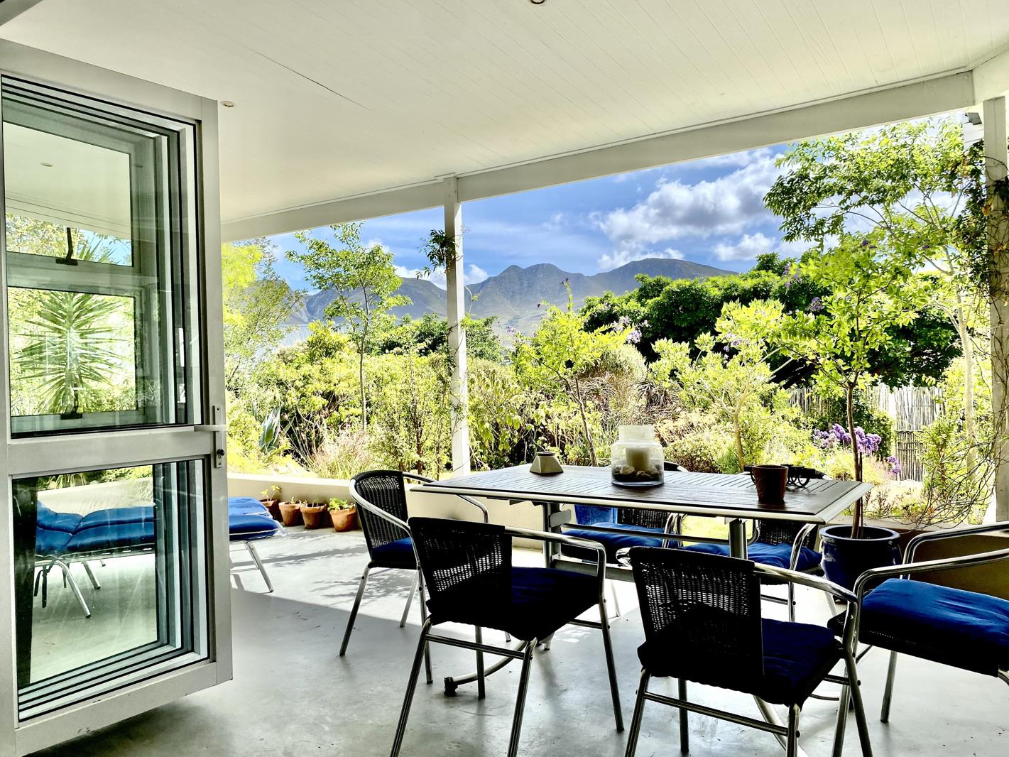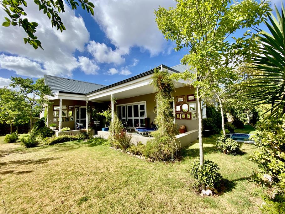 Well planned home in an established garden allowing magnificent views and total privacy in this sought after gated estate, minutes from Stanford heritage village. Perfect for a retired couple, young family or discerning single. This happy space has thee bedrooms, two bathrooms m.e.s and a generous open plan living area. The open plan kitchen has a large separate scullerylaundry. The loungedining room has a wood burning stove for those chilly winter nights and wonderful stack doors to open up to incorporate the covered patio into the living space. All you see are the mountains and pretty treed garden. There is a tiny splash pool to cool off in the summer. Two large water tanks ensure you have a water supply at all times. There is a single carport plus a further 3 cars off street on the paved driveway. This house is a total delight. This is a sole mandate. Please phone for an appointment.
