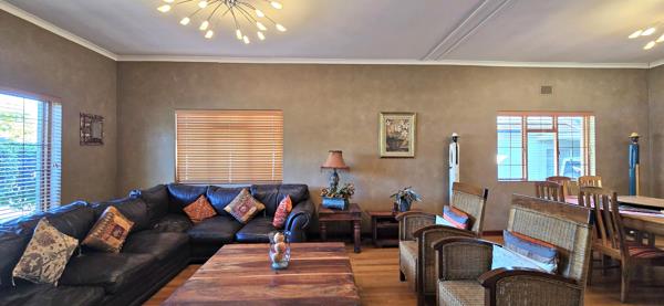 Tri-Mandate: Tri-Mandate: Situated in a tranquil cul-de-sac within a highly sought-after area, this meticulously cared-for family home boasts a prime 2001m2 plot directly bordering the picturesque Koornlands River. Enjoy the serene ambiance of established trees and sprawling lawns right from your doorstep.
