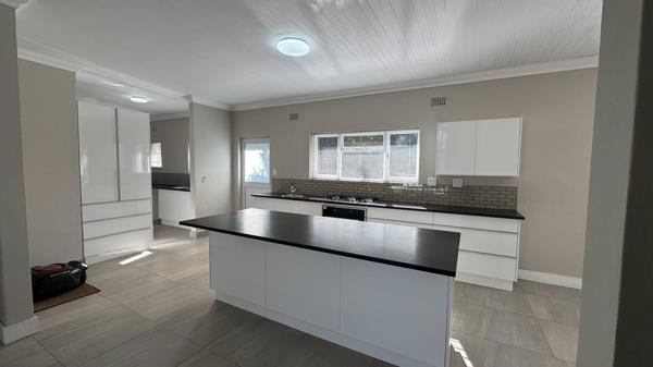 The kitchen is the heart of the home, featuring granite countertops, a central island, gas hob, under-counter oven, and a separate scullery/laundry for added convenience.