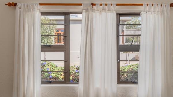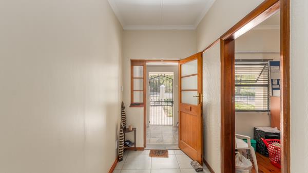 The main house features three generously sized bedrooms, including a main en-suite, and retains beautiful original details such as wooden door frames, wooden floors, built-in cupboards with double wooden doors. A spacious living area flows into an open-plan dining and kitchen space with an indoor braai. A small office nook makes working from home possible without invading the dining room table.