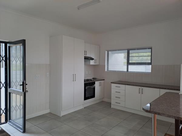 This well designed modern home has a comfortable and inviting living area where people can relax and socialize. The open-plan kitchen has Formica countertops with a built-in stove and hub, double basin and ample cupboard space.