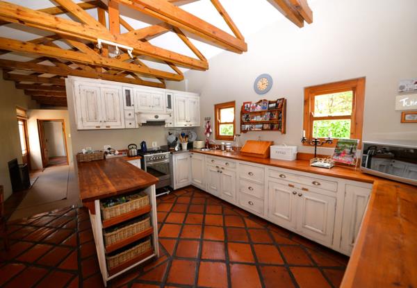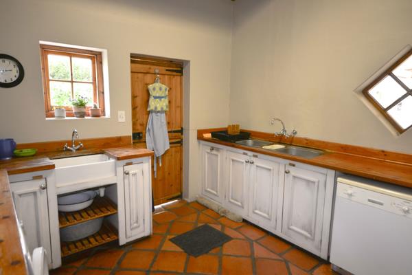 The kitchen is spacious with an adjacent scullery with an exterior door. Indoor braai forms a comfortable unit with a kitchen.