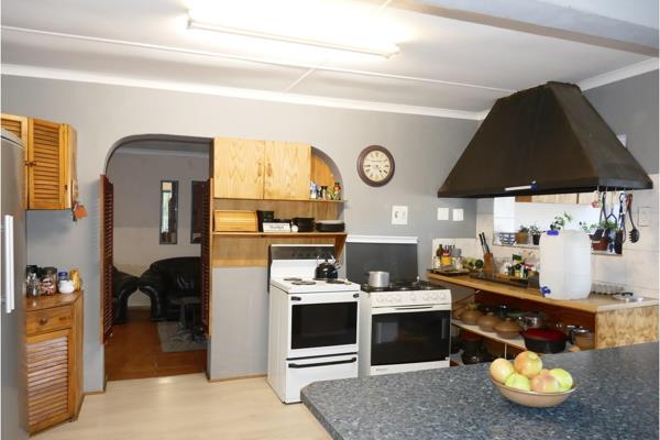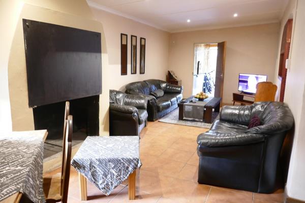 Boasting two generously sized bedrooms fitted with ample built-in cupboards, the main bedroom enjoys the luxury of an ensuite bathroom. The fitted kitchen integrates with the living spaces, including an enclosed patio accessible via sliding doors, a welcoming dining room, and a separate lounge featuring a built-in fireplacebraai and bar area.