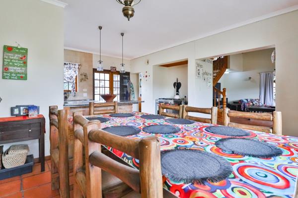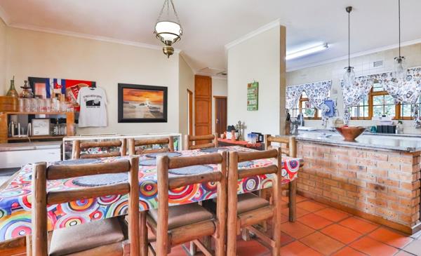 Wooden double doors in the dining room open to the stoep with beautiful mountain views perfect for relaxed entertaining. The main bathroom offers direct access from the main bedroom as well as a second entrance, serving as both an en-suite and guestfamily bathroom. Linen cupboards in the hallway ensures sufficient storage.