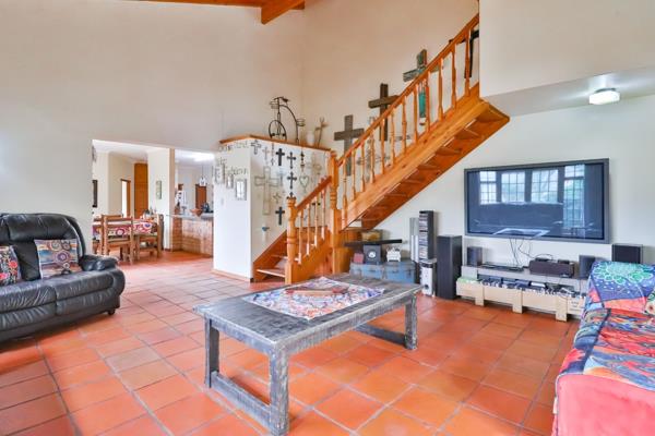 Sole Mandate - This generous facebrick home offers space, comfort, and a wonderful lifestyle in the heart of Villiersdorp. The ground floor features two bedrooms and a bathroom, including a main bedroom with French doors opening onto a stoep where you can enjoy stunning mountain views. The lounge, with its vaulted ceilings, flows into the dining area and kitchen to create a welcoming hub for family life. A separate laundry links directly to the double garage, with access to the courtyard from the kitchen and an outside toilet.