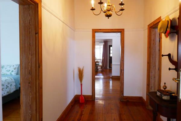 Steeped in history and meticulously restored, this charming Villiersdorp home captures the essence of a bygone era through its carefully preserved original features. Oregon doors, frames and skirtings, broad windowsills, gleaming wooden floors, and a blend of pressed metal and wood ceilings infuse the interiors with timeless character and warmth.