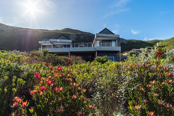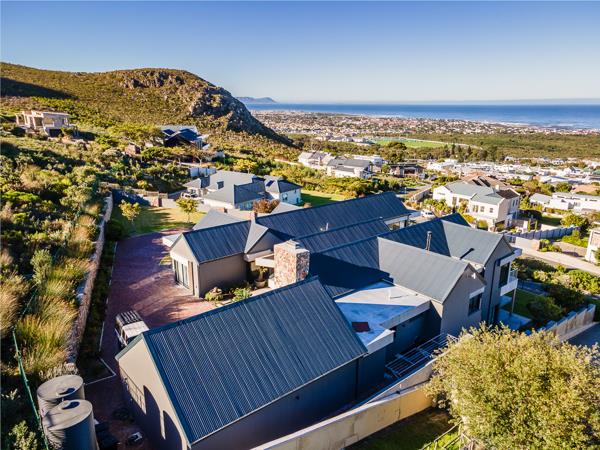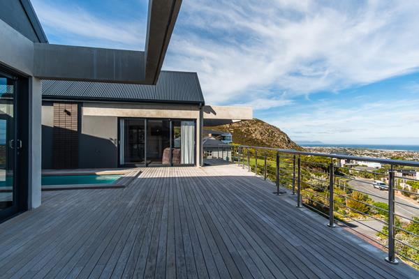 Outside, the landscaped garden is enhanced by Clear View fencing, providing both security and unobstructed views. From this prime position, vistas extend all the way to Gansbaai and, on a clear day, as far as Hangklip a truly rare and enviable perspective.