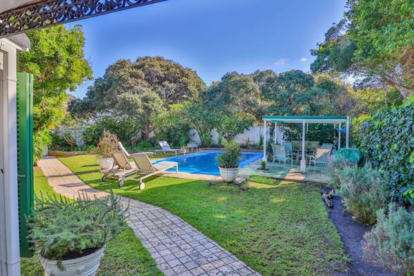 Much-loved family home. Set on a spacious, north-facing corner stand, creating a tranquil and secure setting, this exceptional property offers a harmonious blend of light, space, and seamless indoor-outdoor interplay with a true Hermanus old world charm.