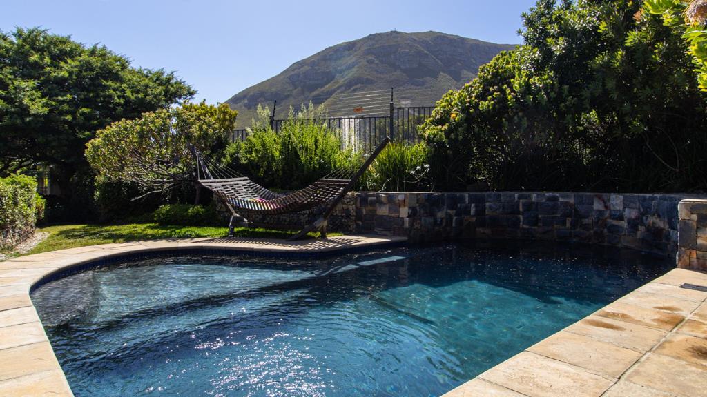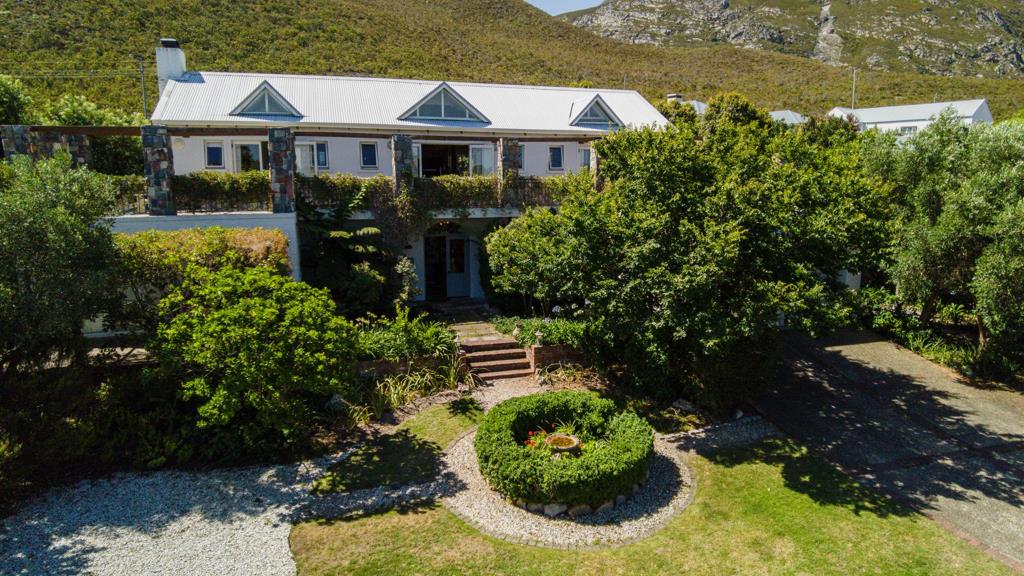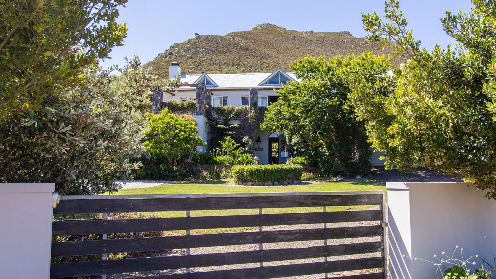 Experience the majestic vistas of Fernkloof Nature Reserve as you drive onto this expansive North-facing property with its grandiose driveway and sweeping lawn offering ample parking space.