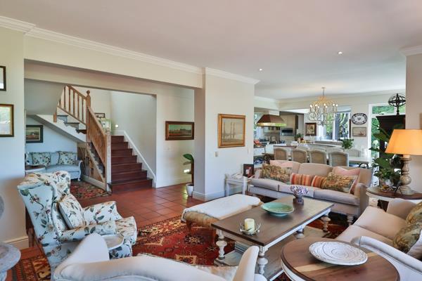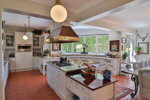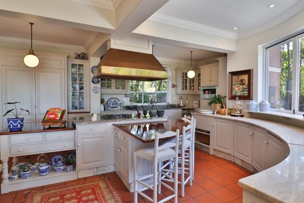 The heart of the home is a chef''s dream: a large, light-filled kitchen with top-of-the-line integrated appliances and a separate scullery for additional workspace and storage. The kitchen seamlessly flows into the dining room, perfect for hosting intimate gatherings or lavish dinner parties. The lavish living room, with its abundant natural light and magnificent fireplace, invites relaxation and conversation. Breathtaking vistas of Walker Bay are framed by glass sliding doors, creating an ever-changing backdrop of natural beauty.