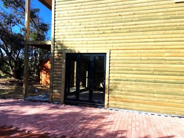 Exclusive Mandate. This brand-new, currently under construction, 3-bedroom, 2-bathroom chalet offers an exceptional opportunity for prospective homeowners seeking a blend of modern design and serene natural surroundings. Strategically situated near the lagoon, the property is designed to capitalize on its picturesque setting, providing easy access to outdoor recreational activities such as kayaking, fishing, and hiking. The layout features an open-concept living area that seamlessly integrates with a contemporary kitchen. The exterior of the property features a paved stoep, this outdoor space is complemented by a braai area, which serves not only as a focal point for gatherings but also enhances the home''s entertainment potential.