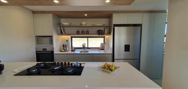 From the moment you step inside, the home reveals a luminous, airy atmosphere where sunlight moves effortlessly through every room. The ground floor unfolds into an elegant open-plan living space anchored by a beautifully appointed modern kitchen, complete with a large gas stove, electric oven, and gas geyser a seamless fusion of style and practicality.