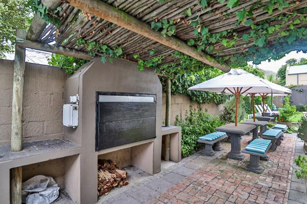 Outside, guests can enjoy a refreshing dip in the sparkling swimming pool or unwind in the braai and entertainment area. The well-maintained outdoor spaces provide a serene setting for relaxation and leisure