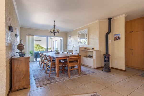 The home''s underfloor heating and Godin fireplace ensure that you stay cosy and warm during chilly winter days. The modern kitchen is a chef''s dream, with Supawood cupboards, a skylight, a double oven with a gas hob, a centre island with beautiful Stargate granite tops, and a separate laundry/scullery. The large braai room with a built-in braai is perfect for entertaining guests, and the courtyard with a boma and a solar-heated splash pool is perfect for a Sunday braai with family and friends. Separate guest toilet. The main bedroom is a peaceful sanctuary that offers lovely sea views, a spacious lounge/study area with sliding doors leading out to the patio, and an en-suite full bathroom.
