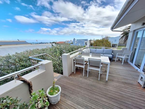 Balcony with built-in braai: A perfect spot for entertaining or unwinding with ocean views and sunsets. The balconys glass door also functions as the main entrance to the home.