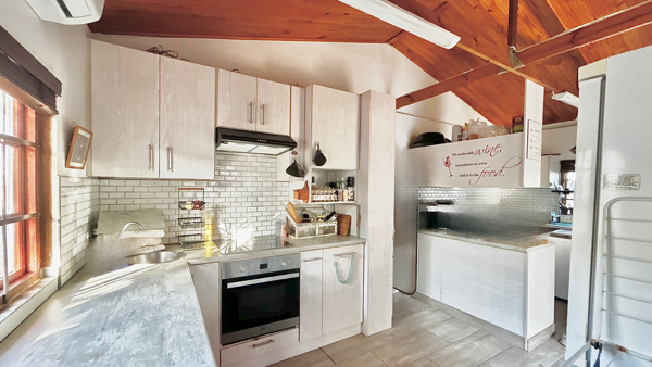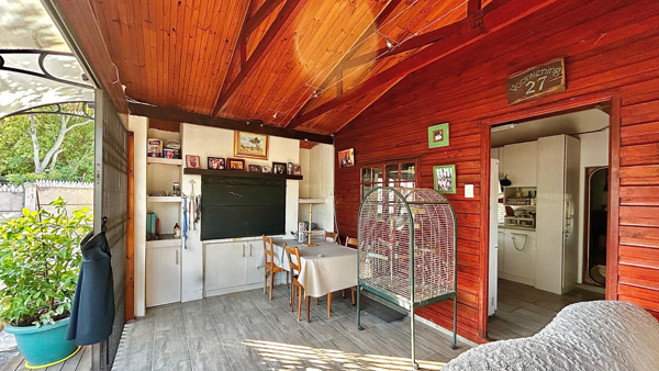 Outside, the property offers a low-maintenance garden with a small veggie patch, wooden decking, and an additional outdoor braai area. The space is quiet, private, and well sheltered, making it ideal for easy outdoor living.