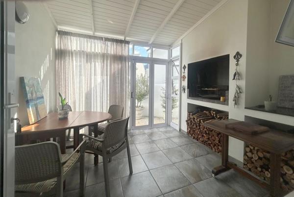 SOLE MANDATE: Situated in the sought-after western side of Sandbaai, this beautiful 2-bedroom, 2-bathroom home offers the perfect blend of comfort, space, and security. Located within a well-maintained security complex, the property boasts a welcoming and stylish interior, ideal for modern living. Both bedrooms feature en-suite bathrooms and a door that opens onto a private, secluded gardenperfect for relaxing mornings or quiet afternoons. The large open-plan lounge includes a cozy fireplace and impressive double-volume ceilings, creating a bright and airy sense of space ideal for entertaining or family living. Stack away doors lead into a braai room, where stack away doors also lead into the garden, ensuring entertaining all year round.
