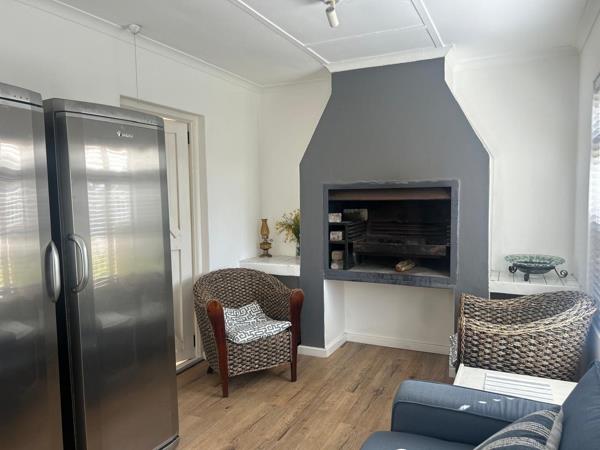 Welcome to this charming property nestled on the scenic western side of Sandbaai, just a short stroll from the beach. Blending modern comfort with rustic charm, this home offers a tranquil retreat with some mountain views. Upon entering, youre welcomed into expansive living and dining areas that flow effortlessly into a spacious braai/playroomperfect for hosting and entertaining. The open-plan design fosters a warm, inviting ambiance ideal for gatherings with family and friends.