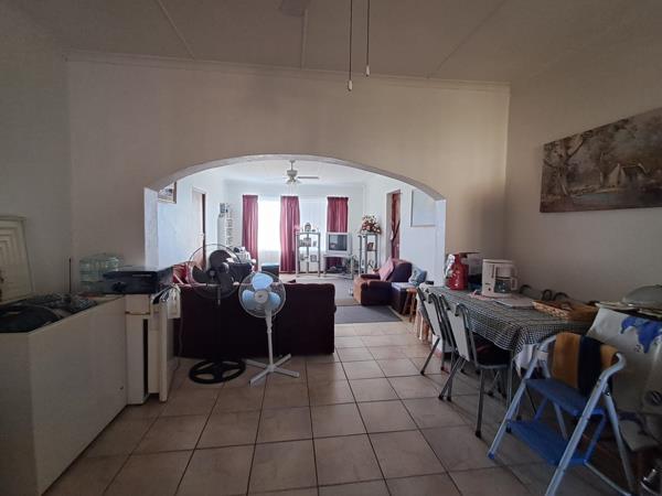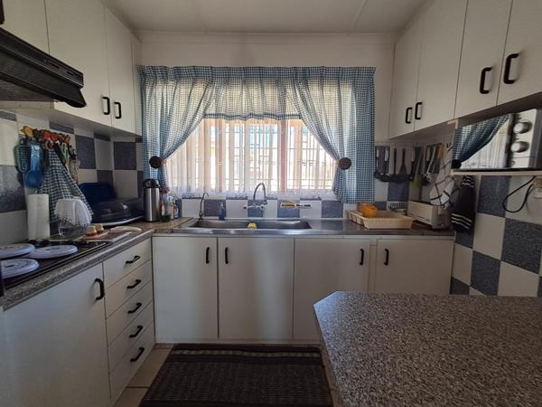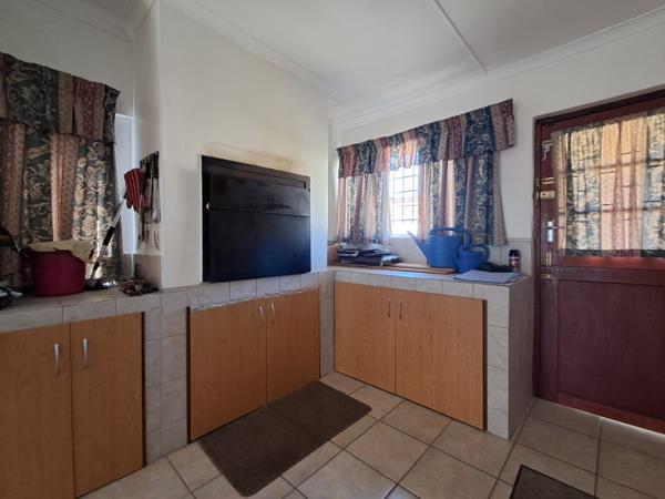 This sturdy, well-built property features three spacious bedrooms with ample built-in cupboards and two bathrooms, including a main en-suite for added privacy and convenience. The open-plan lounge and kitchen create a welcoming and functional living space, ideal for family living and entertaining alike.