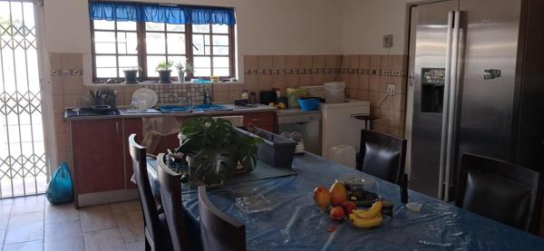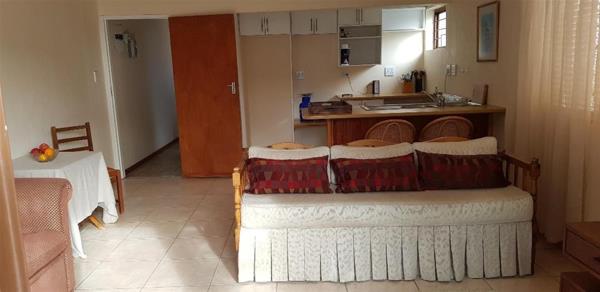 The heart of the home features a lovely living area that flows seamlessly into the garden, perfect for outdoor gatherings or quiet relaxation. The outlay of the property is such that the third bedroom and one of the bathrooms is utilised as a flatlet, ideal for guests, extended family, or as a rental option, offering a great investment opportunity. The garage offers secure parking, while a storeroom with separate entrance adjoins it..