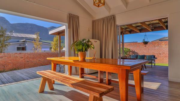 EXCLUSIVE SOLE MANDATE: Experience the perfect fusion of style and elegance in this architectural design home. Each element has been meticulously designed to provide a lifestyle of elegance. As you walk into this pristine home you will be welcomed with spacious light filled living areas thoughtfully designed to accommodate both relaxation and entertainment and flow by way of stack doors to a wrap around Balau decking patio with a built-in braai with north facing mountain views and an established landscaped garden. The open plan layout flows seamlessly to create style and an inviting atmosphere with double volume ceilings in the living and dining areas with cozy fireplace. Ultra-modern kitchen with caesar tops and fitted gas stove and large scullery to accommodate all appliances. The island in the middle creates enough workspace to prepare meals. Interleading double garage. The home features three generously sized bedrooms with a large main bedroom on suite and lots of built in cupboards with doors out to the garden. All bathrooms are beautifully appointed to add a touch of sophistication to daily living. Upstairs bedroom has sliding windows to enjoy views and a study nook.