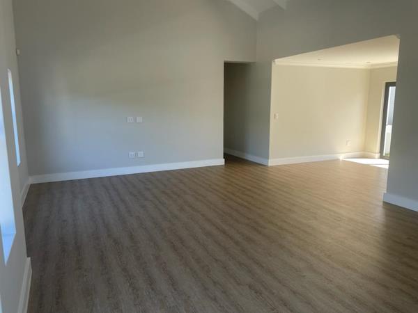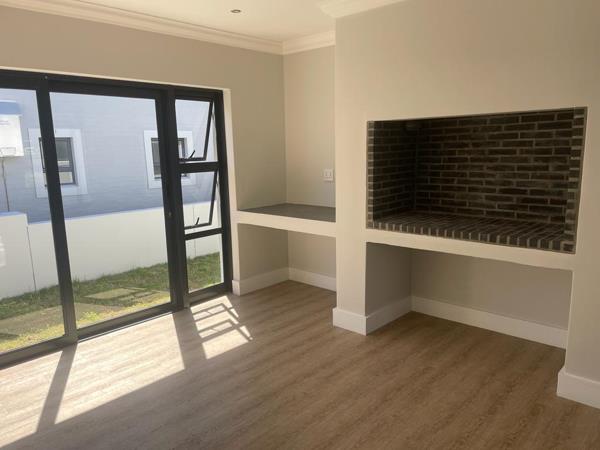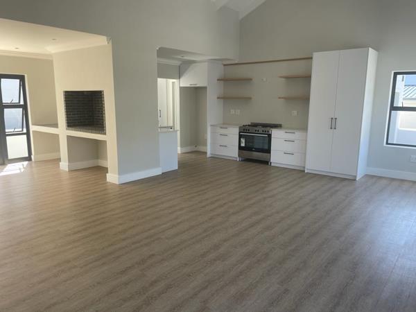 Offering three spacious bedrooms and two modern bathrooms, it perfectly balances comfort and convenience. The open-plan kitchen with scullery flows seamlessly into the lounge and dining area, while the indoor braai makes entertaining a pleasure all year round.