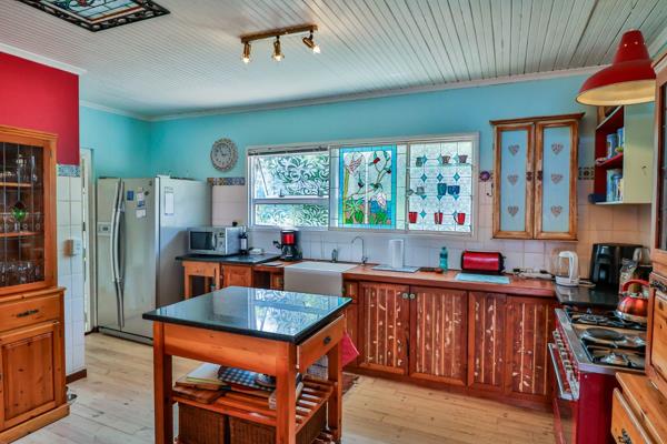 Home offers 4 bedrooms and 4 bathrooms with a large open plan living/dining area and cozy fireplace and opens to the balcony with sea views. Nice size kitchen with fitted gas stove and separate scullery. The wood floors also add a cozy feeling to this home. Nestled in a very calm landscaped garden with private living from the street. and lots of birdlife. Equipped with an inverter 5 lithium battery and 8 panels makes this a very tempting buy. Highly recommended for this price and location as well as all the accommodation it offers makes this a very tempting buy.