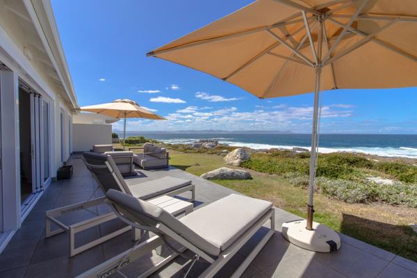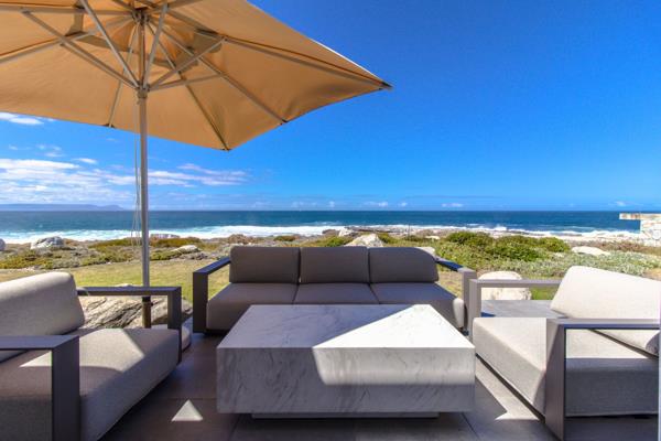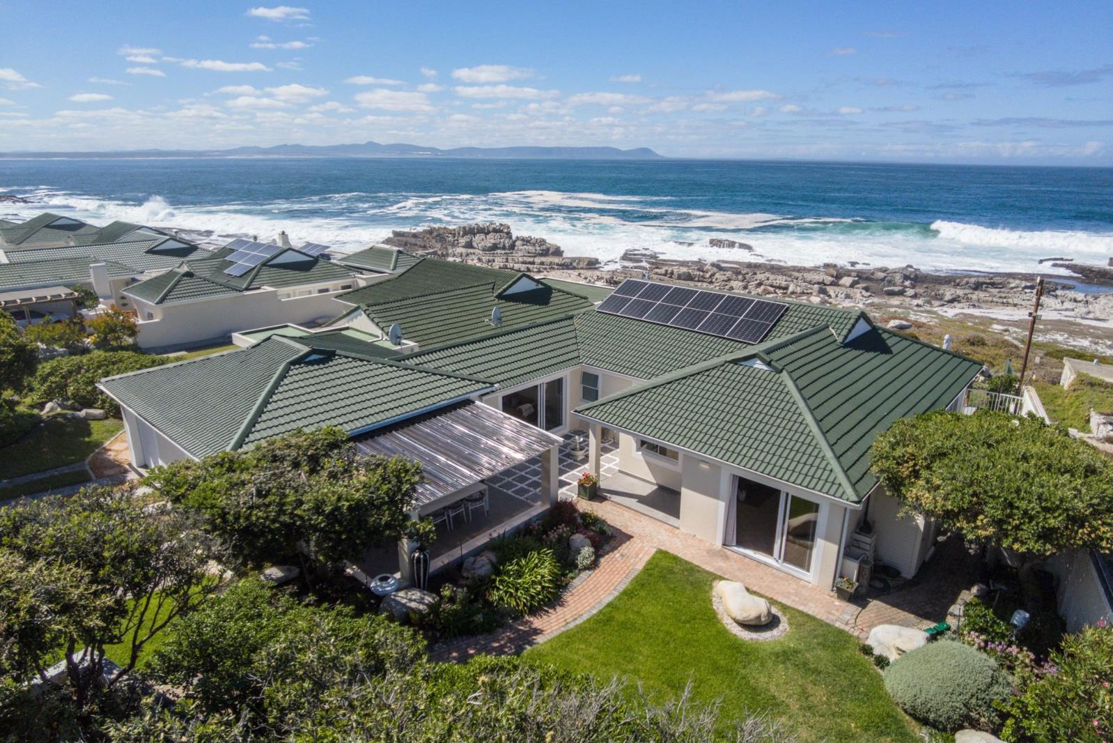 Seafront Luxury Estate in a Secure Gated Community. This front row residence set on an expansive erf within the glorious Whale Rock Estate boasts magical panoramic sea view vistas of Walker Bay. A much-loved family retreat and holiday haven, this home offers a lifestyle of peace, privacy, and security.