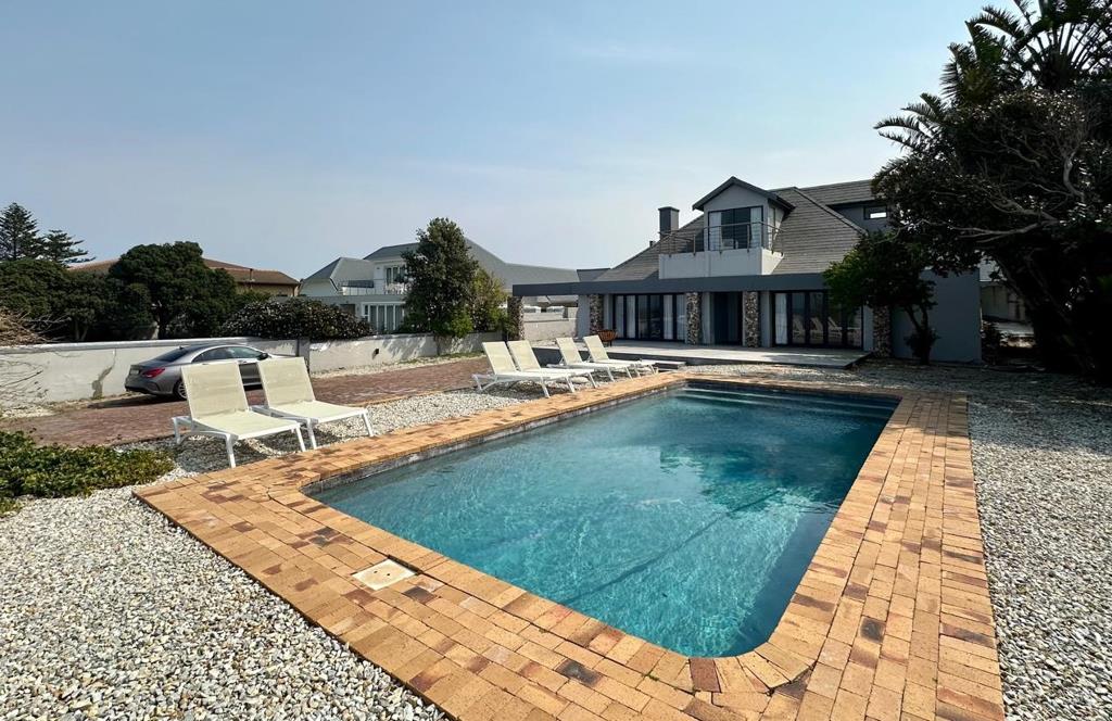 Discover the ultimate coastal retreat in this expansive six-bedroom home. Nestled in a prime location with unobstructed vistas of Walker Bay, this property offers unparalleled access to the renowned cliff pathway, ideal for whale watching. The home features an open-plan living area that seamlessly connects to a spacious patio. Enjoy sun-soaked days by the pool or host unforgettable gatherings. The inviting lounge, complete with a fireplace and built-in braai, provides a cozy ambiance for chilly evenings.