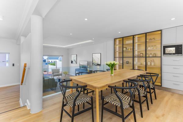 In an exclusive, secure complex of only six units, this pristine property provides the ultimate in luxury living, with easy access to cliff paths, restaurant and the vibrant town centre of Hermanus. The apartment seamlessly combines modern luxury with natural beauty, with expansive windows flooding the open-plan living, dining, and kitchen area with light.