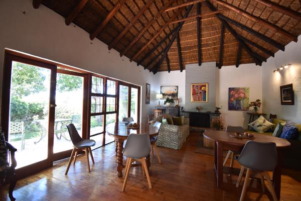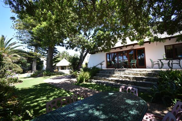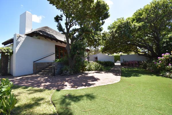 6 bedroom guest house plus a self catering one bedroom cottage. Ample parking for visitors. This charming thatched roof house with double volume space in the living and dining area provides a peaceful and tranquil ambience for either a prospective home owner or guesthouse guests. A fireplace warms the lounge in winter and the dining section has a convenient serving section for easy breakfast management. All the bedrooms are very spacious and on suite. Lovely wooden floors in the lounge and bedrooms enhances the old world charm. The cottage is completely separate with large dressing room and on suite bedroom with a small fitted kitchen, as well as an extra bed in the living room. The main kitchen has a separate scullery, and is still original and might need modernizing. There is also an outside laundry fitted with two top loader washing machines and a dryer as well as a concealed court yard with washing lines. The main attraction is the outside pool and entertainment area with built braai and thatched gazebo, completely removed from the house and sleeping quarters. Large trees provides lovely shade and atmosphere to relax in the garden and there is also a lovely shaded outside dining area under large shaded tree for entertaining on those hot summer days. This house is currently managed as a guest house, but can just as easily be a comfortable family home. All the rooms are fitted with smart tvs and fridges There is also lots of potential to renovate and also to utilize a lovely sea view portion of the property. Please contact me to show this lovely house to you.
