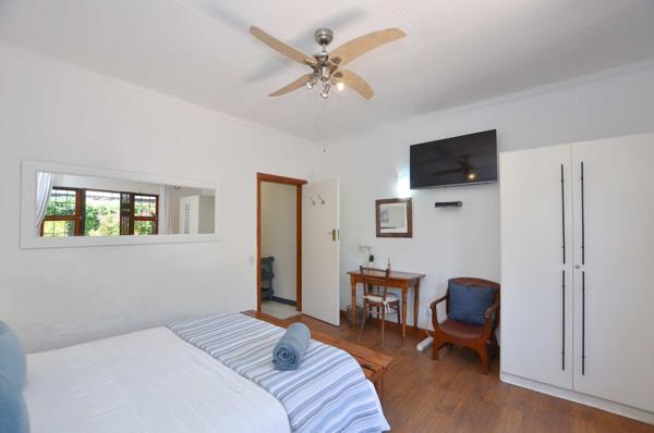 Dine indoors or step out onto the sunny patio off the lounge, where you can enjoy meals overlooking the picturesque garden. The outdoor space is enhanced by a lapa and a generously sized pool, perfect for cooling off on lazy summer days. Mature trees provide privacy and tranquility, making this section of the property an ideal sanctuary for relaxation.