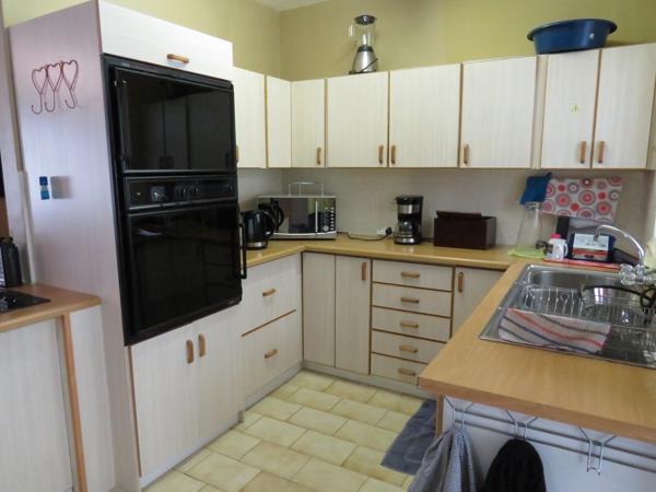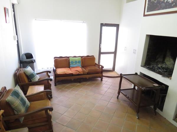 Lounge and dining room with a fireplace. Traditional indoor braai room with sliding doors. Kitchen with eye level oven and separate hob. Laundry room and a pantry cupboard downstairs. 3 Bedrooms with air-conditioning and 1 full bathroom.