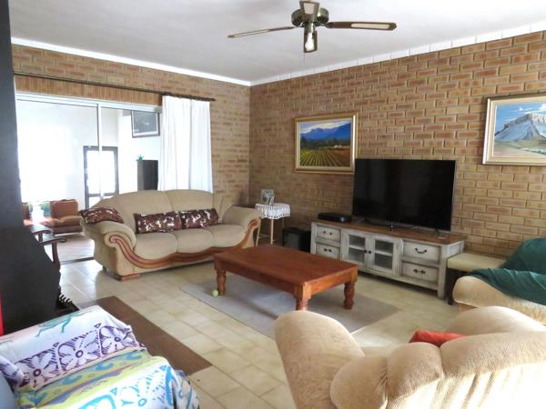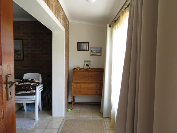 3 Bedrooms, with a full en-suite bathroom, full guest bathroom, kitchen, tv lounge, enclosed balcony serving as a study and music room. Covered patio with sliding doors and built in braai.