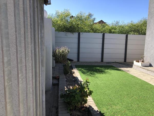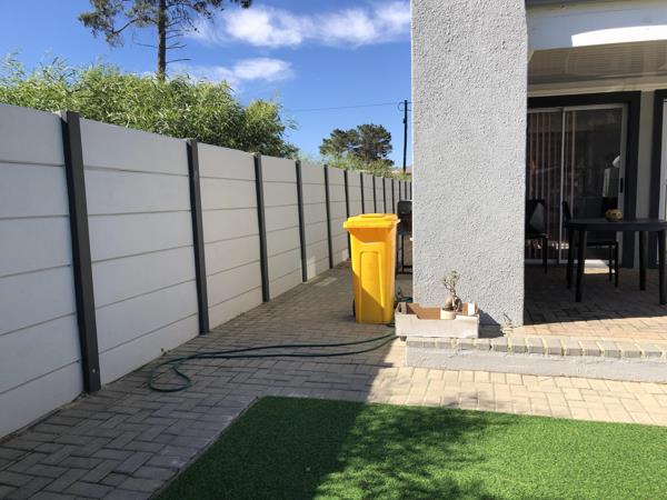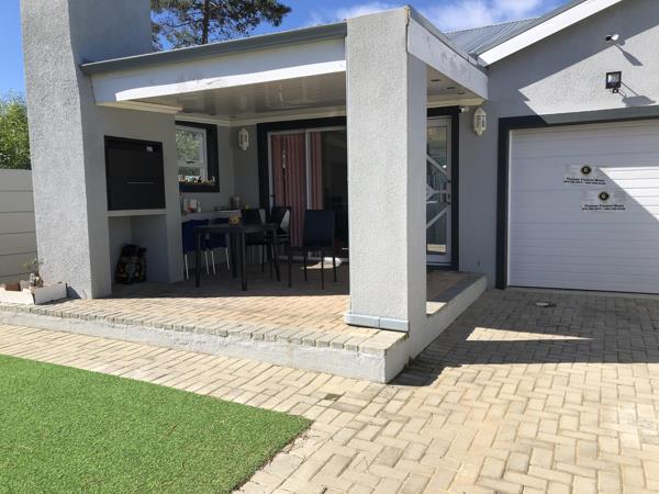 I would like to present to you this newly built house in Botriver. It consists of 3 bedrooms with the main en suite. The en suite has a shower and the other bathroom which services the 2nd and 3rd bedrooms has a bath and shower. There are ample built-in cupboards in the house. The kitchen has a built-in stove and canapy and ample workspace and packing space. The dining room and lounge are open plan. The lounge leads out onto a patio with a built-in braai. The garden is small with established plants and there is a small patch of well-manicured grass. The property is surrounded by vibracrete walling and palisade fencing. There is a single garage with a remote flip-up door. There is an electric gate as well. The house is connected to a security company.