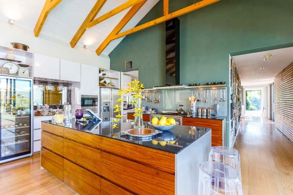The living spaces exude a sense of openness, with an ergonomic kitchen featuring integrated appliances and elbow-height counters, perfect for both intimate meals and large gatherings. A separate scullery, wine cellar and cold storage ensure every detail is accounted for, making the home an entertainers delight.