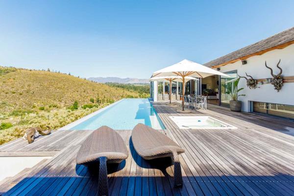 The homes design integrates expansive picture windows and floor-to-ceiling glass doors, offering panoramic views of the Springbok dancing over the fields, the African landscape, winding Palmiet River and surrounding conservancy.