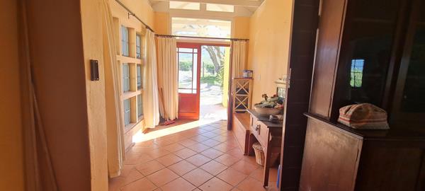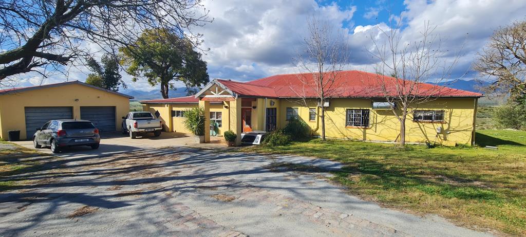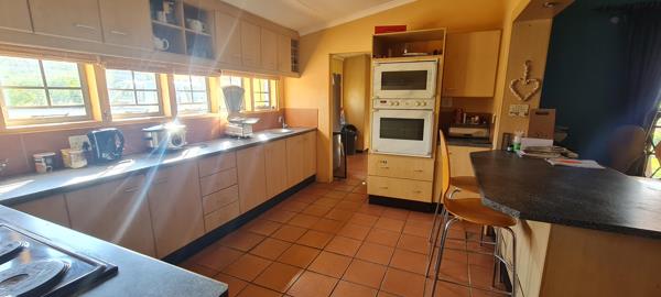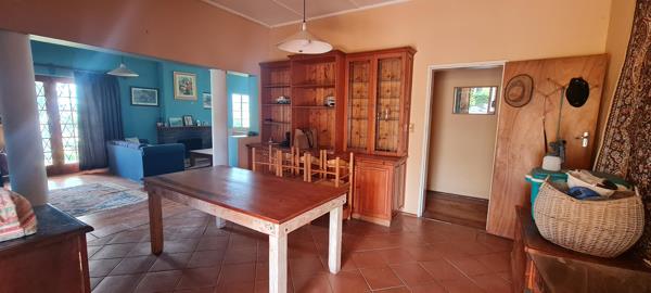 A spacious main house on the property offers 4 bedrooms, 2 bathrooms, a dining room and 2 open-plan lounging areas opening into the kitchen which is equipped with a scullery and store room/pantry. The backdoor opens onto the veranda and swimming pool boasting with spectacular views.