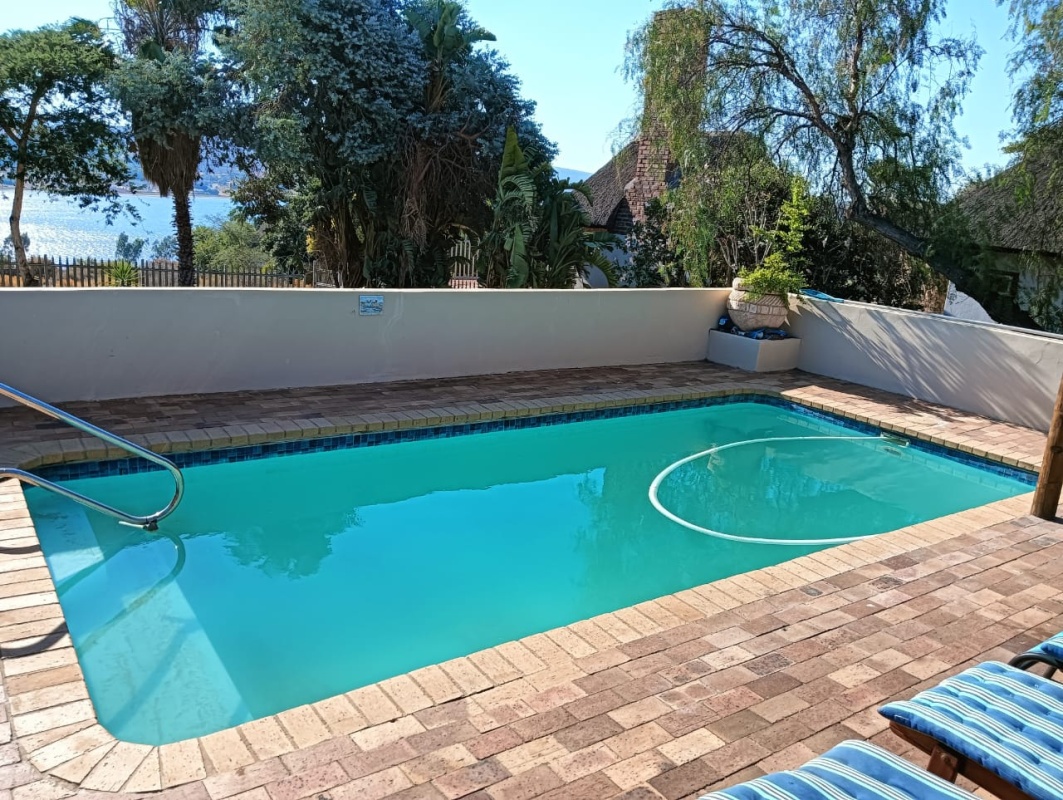 A standout feature of this property is the powerful boat equipped with a V8 engine, ideal for fishing and various water activities. The meticulously maintained garden, enhanced by fruit trees, provides a serene outdoor seating area perfect for al fresco dining by the braai. The covered braai area allows for year-round entertaining.