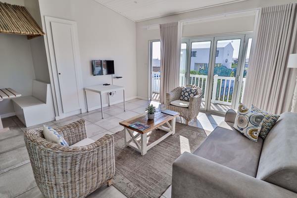 As you walk in, the large open plan living room welcomes you. The living room leads to the modern, open plan kitchenette. The apartment has two bedrooms with built in cupboards. The main bedroom has sliding doors leading unto the patio and private balcony. Offering you 306 views of Elands Bay. The bathroom is equipped with a shower, basin and toilet.